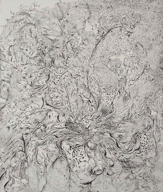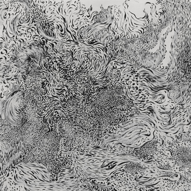 《隱性的維度》(Invisible Dimensions)系列創作關心抽象語彙水墨繪畫的新契機,珍視生命本真與生成原力,如同夾縫中的小草隱微之姿,並且如何通過一隻毛筆,把握每一筆書寫意識,不斷辯證個人與外部世界的多元感知。探問生命多面向的弔詭、矛盾,美好與衝突,以多樣的抽象語彙與多視點的時空縫合,進行極小維度感知的串連、旋繞、異質並置等建構。探索從A與B之間,不斷流變轉換的可能向度—「間性」創造邏輯(Creative Logic of the “Interval”—Difference between A and B)。朝向聯覺具象/抽象;有形/無形;有機/幾何;意識/前意識/非意識;理性/非理性;域內/域外;非自然/自然性;荒蕪/實有⋯等之間的動力互滲關係,在時空縫合與凝結的皺摺處敞開,流變生成出多重結構的根莖法則。在藝術實踐中的空間拓墣,折曲於混沌與現實性之中,以極小的精神性筆觸為基調,推敲似形似意的筆觸語義,其意向性有機流動於意識空間與意象景觀之間,蠕動於生命中的輕重力度,呼應宇宙母體法則、演繹涵化,形塑多元書寫的殊異自然景致。